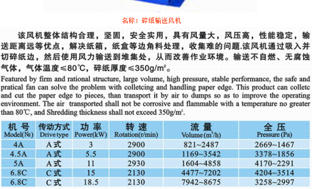 碎紙輸送風(fēng)機 碎紙輸送風(fēng)機 詳細參數(shù)