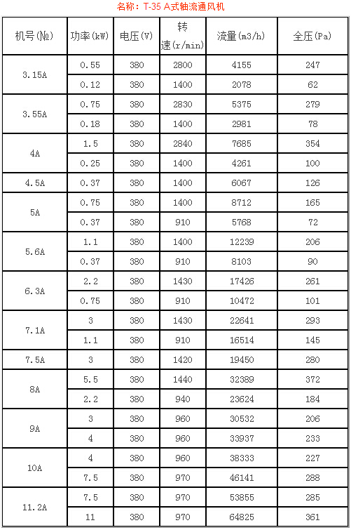 T-35 A式軸流通風機 T-35 A式軸流通風機 詳細參數